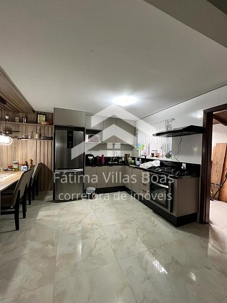 Sobrado 03 suítes, 01 banheiro social, sala, cozinha, lavanderia, fogão campeiro, churrasqueira, garagem coberta para dois carros, área lazer, piscina, alarme, sistema câmeras com DVR.